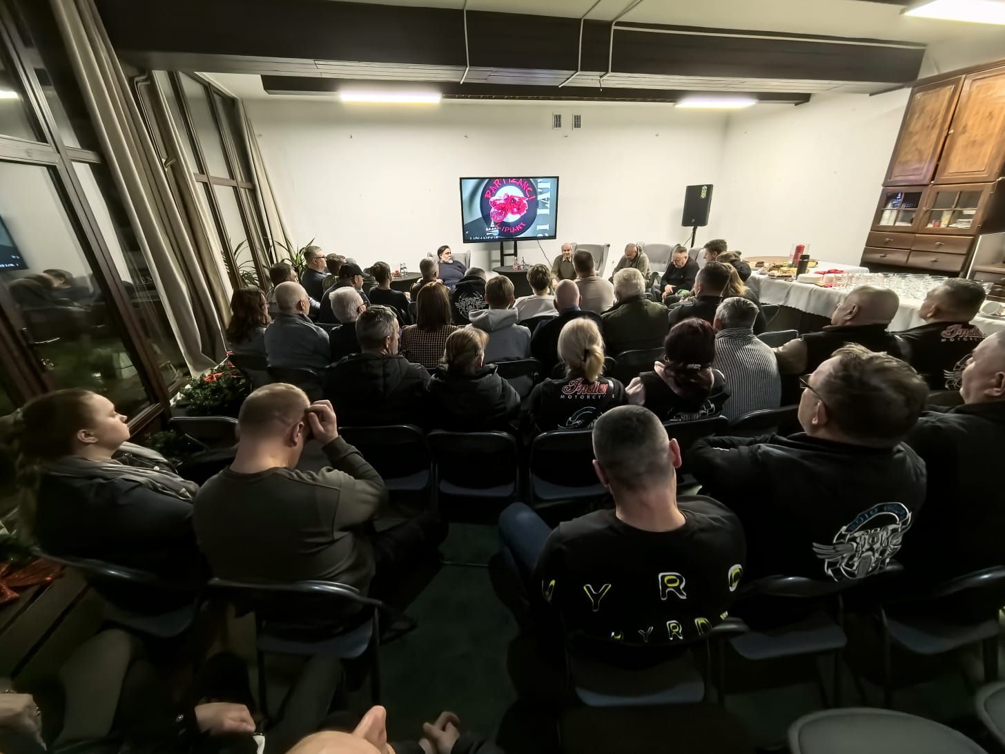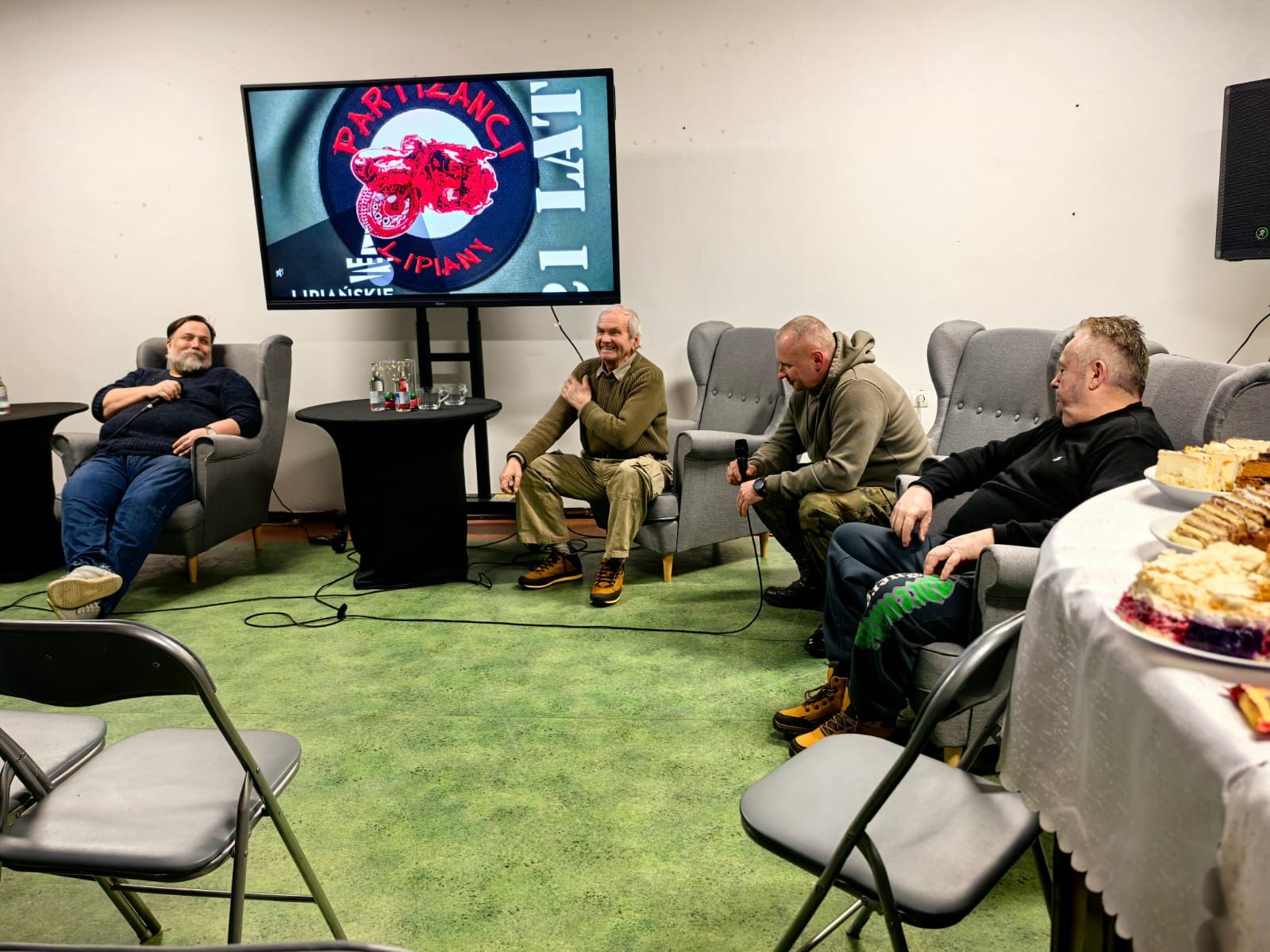 W okolicach 2005 roku pojawiła się koncepcja powołania stowarzyszenia. Sama nazwa „Partyzanci” narodziła się na łamach „Kuriera Szczecińskiego”, gdzie zwrócono uwagę na to, że każdy z członków nosił inny mundur. Trochę przekornie, trochę z przymrużeniem oka – i tak już zostało. Swoją część opowieści dorzucił także Mariusz „Muniek” Szpakowski, pierwszy prezes klubu, który przywołał wspomnienia z pierwszego zlotu i emocjom jakie się wtedy z jego organizacją wiązały. Warto dodać że, na bibliotecznym atrium zaparkował Tarpan Honker oraz dwa partyzanckie motocykle z koszami! Na zakończenie spotkania Pani Marta Sykucka wykonała pamiątkowe zdjęcie uczestników, domykając wieczór, który był bardziej spotkaniem znajomych niż oficjalną uroczystością.